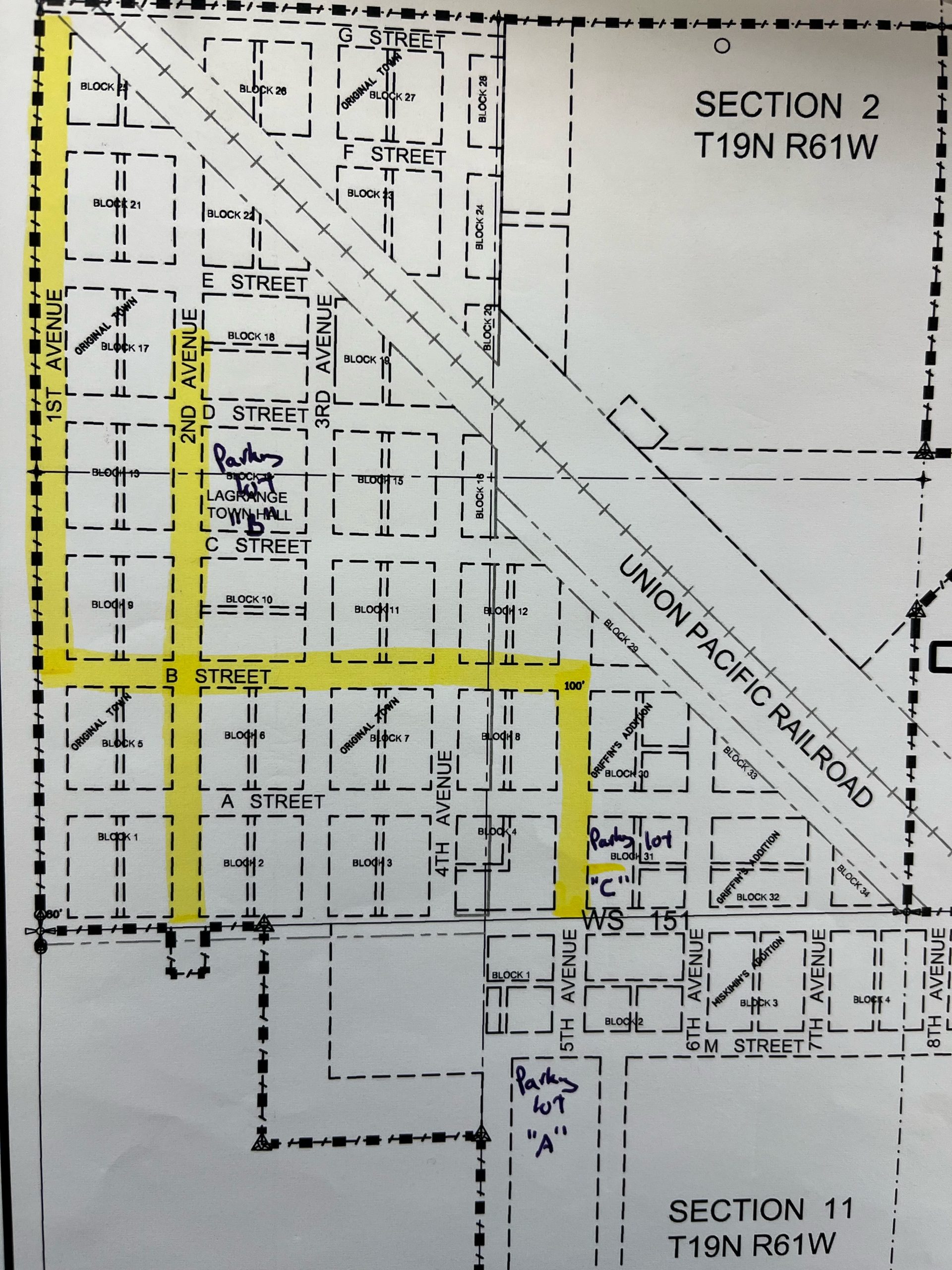 Chip sealed all paved streets in town as well as parking lots at town hall and community building.