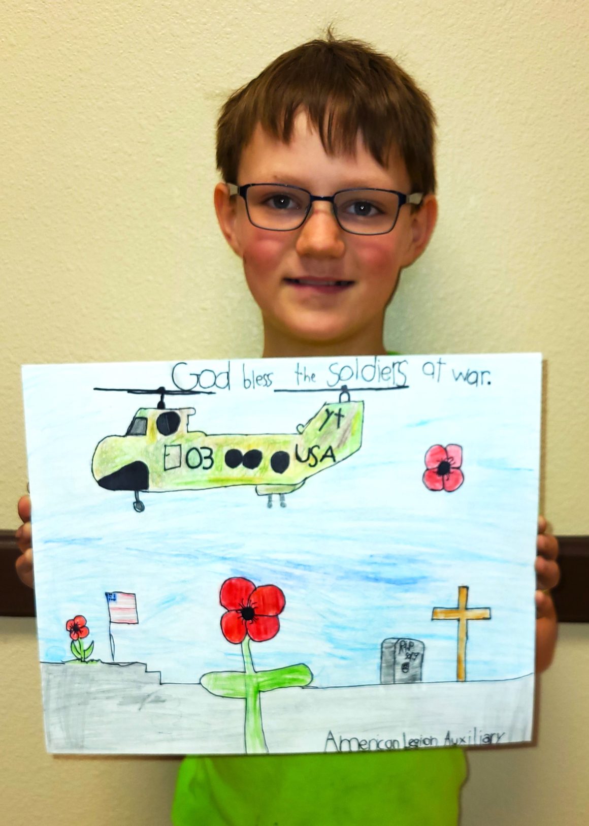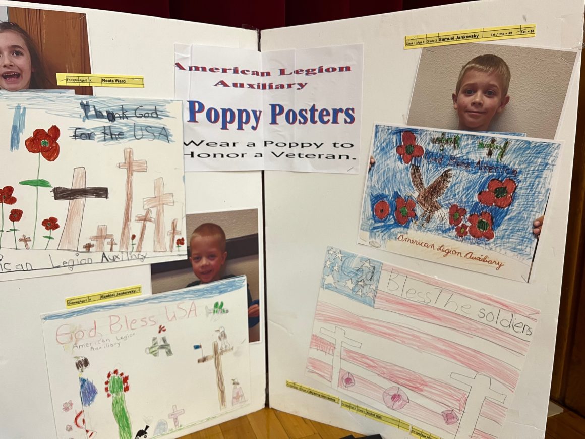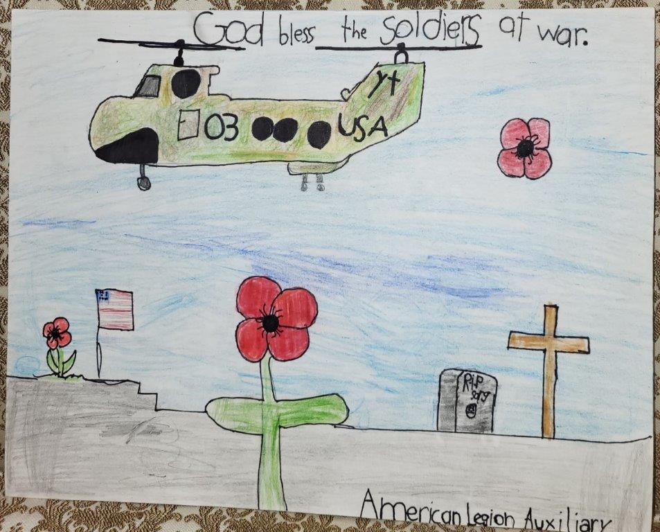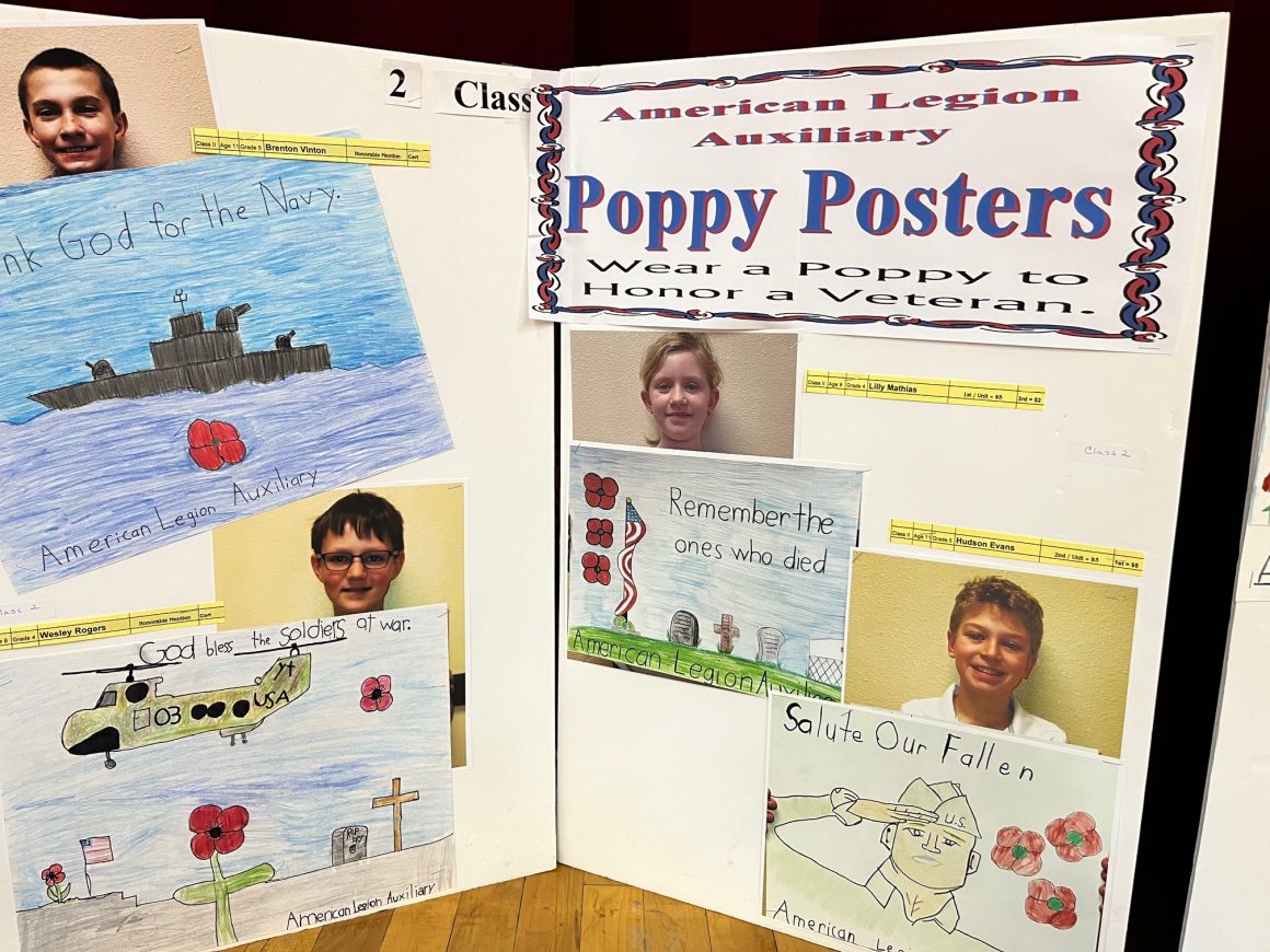 John A McGill American Legion Auxiliary Unit 70 in LaGrange encourages patriotism and Americanism through the Poppy Program. This program encourages everyone to wear a poppy in remembrance of America’s military Veterans. To help spread awareness, students are invited to participate in the Poppy Poster Program. Students attend classes (usually after school) to learn about the significance of the poppy and how to design a poster which advertises the importance of the red crepe paper flower. Participants learn art and advertising techniques and messaging along with American history and respecting those who died defending our country.